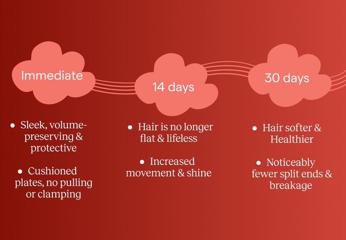 KEEO glides without pulling or tugging. Designed to shape around your strands — not press them flat — for up to 50% less tension and healthier styling in every pass.
