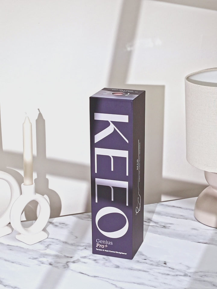 KEEO Genius Pro+ is the only styling tool on the planet with both heat and tension control. Its patented contoured plates with a protective air gap reduce tension by up to 70%, allowing hair to glide smoothly without tugging, pulling, or crushing the cuticle. This results in less breakage, frizz, and thinning, while maintaining your hair’s natural strength and shine. Gentle on every hair type, especially fine or fragile strands.
